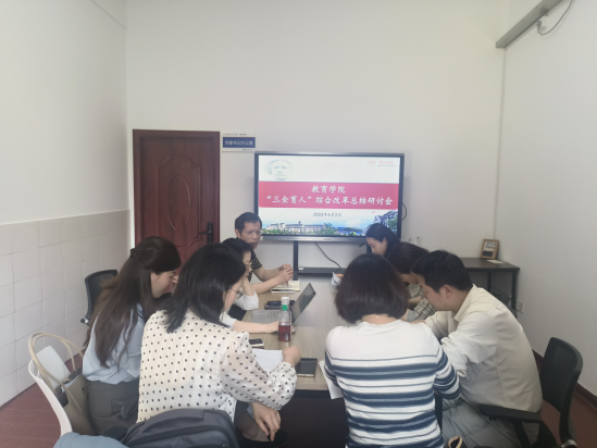 研讨会上,各系、各办以此次总结研讨为契机,全面学习领会习近平总书记考察我校时的重要讲话精神,遴选特色鲜明的“三全育人”案例并进行汇报。院综合办汇报了“以师生为本,践行服务育人”的服务育人案列;学工办汇报了“彰显一师底色,发挥红色文化的育人、化人功能”的文化育人案例;教科办汇报了“教学科研共生共荣,循环互哺‘三全育人’”的管理育人案例;教育学系汇报了“大思政与课程思政育人实践”的课程育人案例;心理学系汇报了“用‘心’育人”的心理育人案例;教育技术学系汇报了“‘三全育人’理念下《计算思维与Python程序设计》教学实践探索”的课程育人案例;学前教育系汇报了“立德树人:学前教育教师的教与导”的实践育人案例。各系、各办结合“三全育人”工作实际总结汇报的典型案例思路清晰、图文并茂、数据详实,具有示范作用和推广价值。