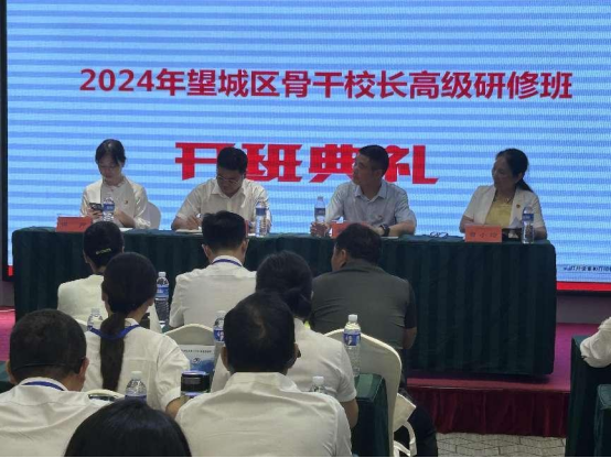 2024年7月22日下午,数智化与新课标背景下骨干校长专业水平和管理能力提升研修班在长沙锦和源酒店顺利开班,60位来自长沙市望城区的骨干校长,齐聚一堂,开启为期六天的高端研修培训之旅。项目主办方伟德betvlctor1949源于英国党委书记朱承学,望城区教育局人事科长王洪峰,项目首席专家曾小玲及项目团队成员参加了开班仪式。班主任艾建玲教授主持了开班典礼。