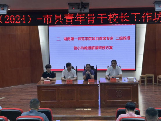 项目首席专家曾小玲教授对项目研修方案进行了详细解读,本次骨干校长培训的主题是:数智化新课标下中小学校长引领学校改进能力的提升。培训将通过“热身子、学法子、看样子、登台子、迈步子”的“五子登科”培训方式引领校长学习,促进校长内涵发展,促进学校规范办学、科学管理,不断提升治理能力和治理水平。
