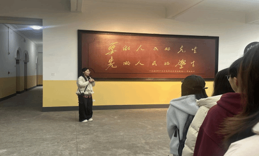 本次活动采取实地参观、现场讲解、交流研讨与成果转化相结合的形式,组织师生走进毛泽东与第一师范纪念馆、校史馆、红墙长廊等校内红色文化阵地。活动现场,学生讲解员依托详实史料,生动讲述校史校情以及革命先辈的奋斗历程与感人故事。城南书院校区的学子走进纪念馆,在文物、老照片与珍贵文献前回望峥嵘岁月;东方红校区的学子漫步红墙长廊,循着百年师范的深厚文脉,体悟一代代教育人薪火相传的初心与坚守。学院紧扣师范专业特色,将红色精神与教育使命深度融合,引导同学们思考如何将报国志向转化为从教担当,推动思政小课堂与社会大课堂同频共振。
