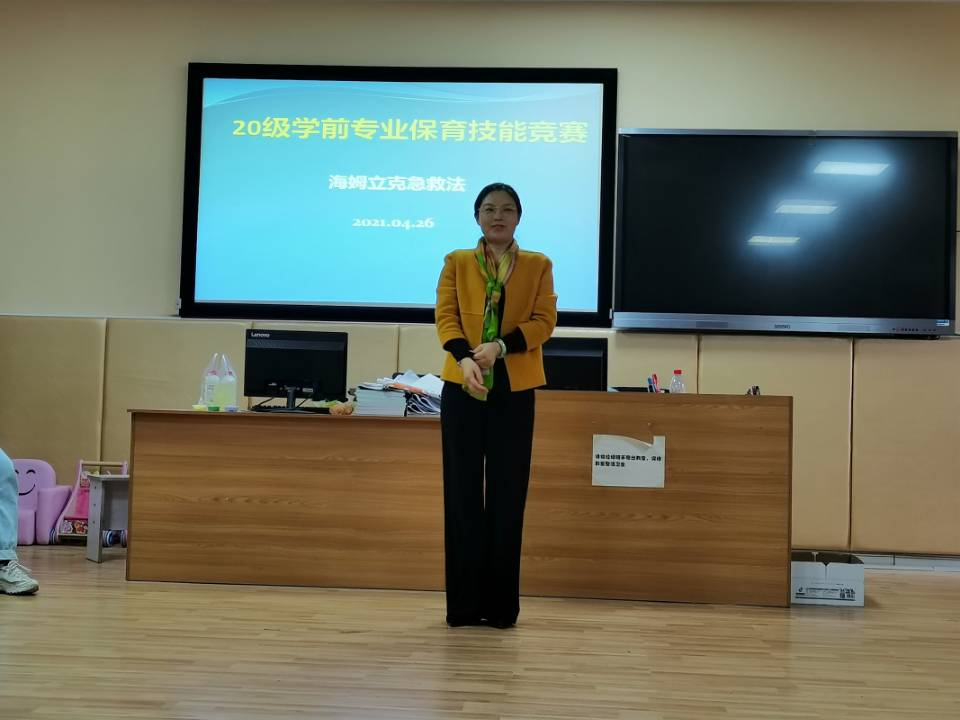在保育卫生技能大赛中20学前国际1班获一等奖、20学前2班获二等奖、20学前1班获三等奖。