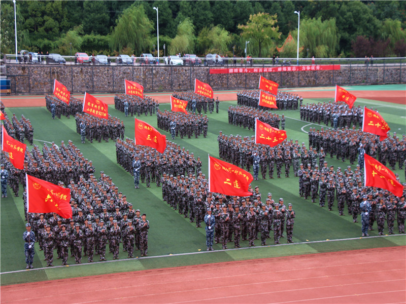 各连分列式表演中,激情澎湃的口号和铿锵有力的步伐代表着新生们坚定的信念。