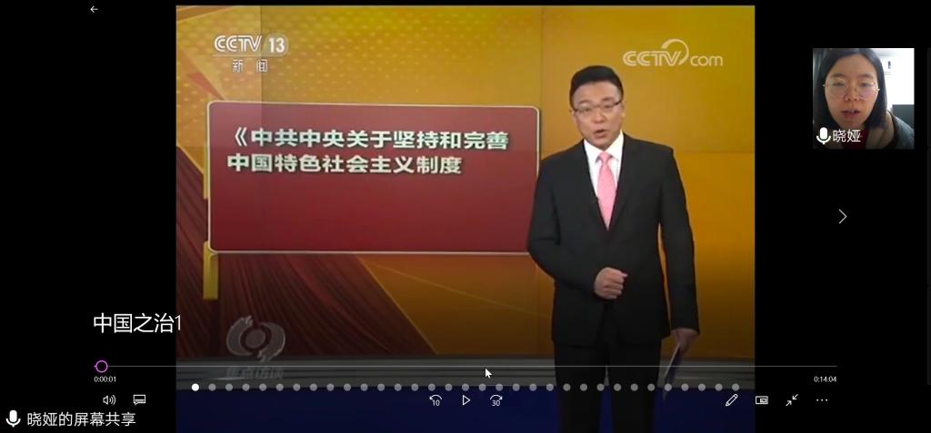 典礼在庄严的《国际歌》声中结束,随后由董晓娅老师组织视频学习。