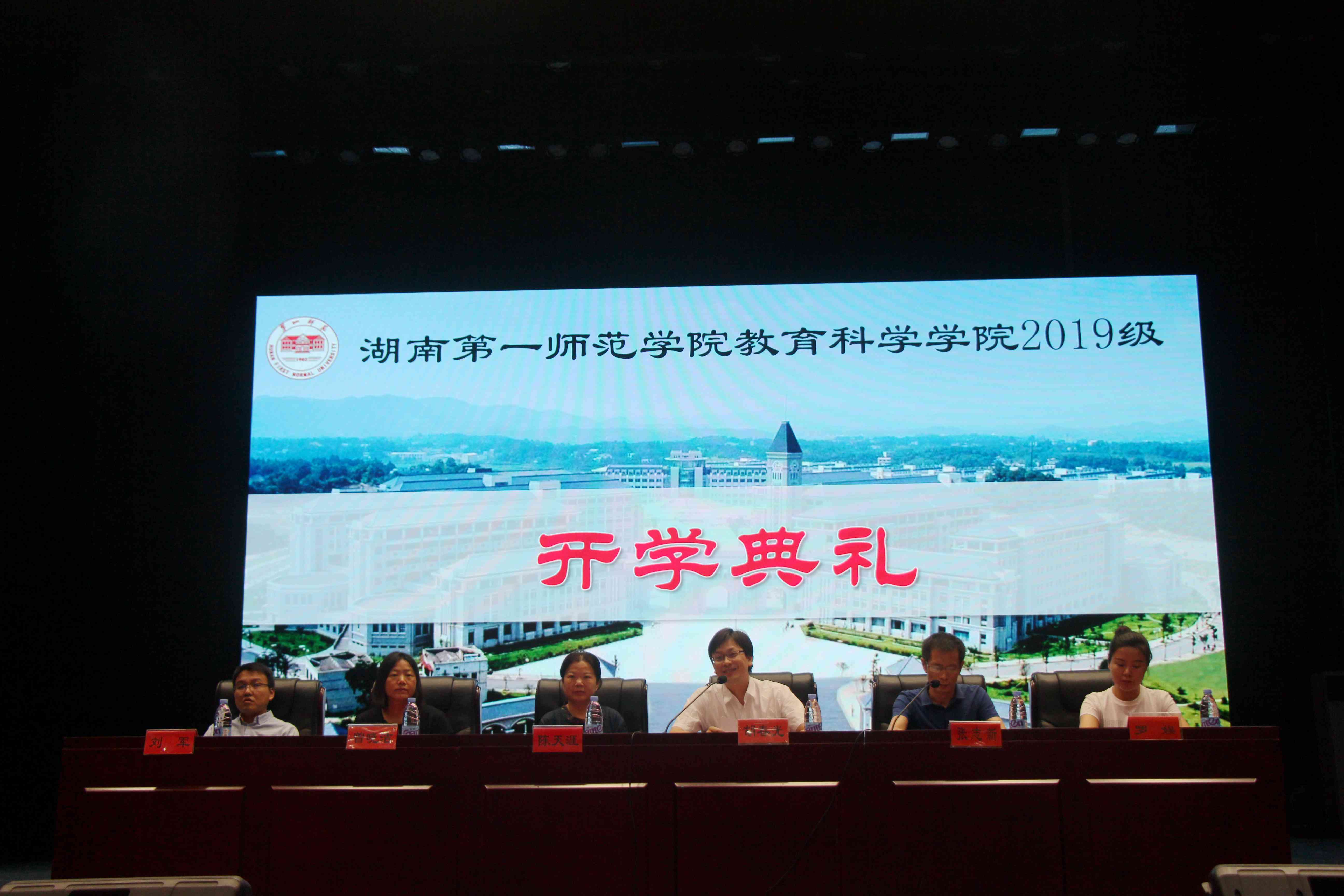 2019年9月8日上午8点,伟德国际1949教育科学学院2019级新生开学典礼在学校田汉剧场隆重举行。我院党总支书记陈天涯、党总支副书记、院长胡春光、副院长曾晓洁、院党总支副书记张志新、学工办主任刘军、团总支书记罗娱、新生辅导员石慧、刘森林、教师代表李金国等出席典礼,来自全国各地的592名新生参加了开学典礼,党总支副书记主持仪式。