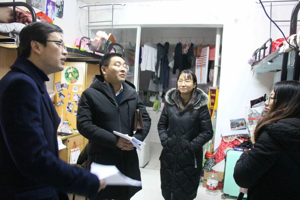 为迎接文明高校创建,确保在学生寝室方面平安、干净、文明,12月11日晚,我院党总支张俭明副书记、胡春光副院长、学工办刘军老师带领全体专兼职辅导员老师对我院所有寝室进行全面细致地检查。