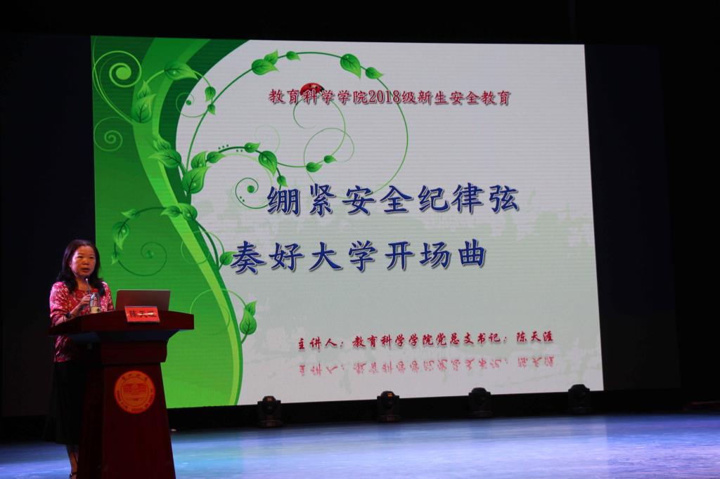 陈天涯书记接着做了“绷紧安全纪律弦,奏好大学开场曲”安全讲座。陈书记介绍了学校周边的复杂环境,通过列举多个真实事例,给同学们敲响警钟,并就学生身心、消防、财产、交通、政治五大安全问题提供新生预防及应对措施。下午两点,黄任之教授开展了生动形象的心理健康教育讲座。黄教授从如何读大学、大学生心理特点、大学新生主要心理矛盾三个方面指出新生们要克服适应不良综合症,提高自己的社交能力,正视理想与现实的差距,并倡导同学们积极接受心理咨询服务,关注自身心理的健康成长。张俭明副书记随后展开了“遵守大学纪律制度,铺就健康成长之路”的校纪校规教育讲座。无规矩不能成方圆,无制度无以建秩序。张书记结合学院实际,运用丰富案例解读了《大学生活指南》中部分重要内容,引领新生将规章制度内化于心,外化于行,做一名遵纪守规的大学生。