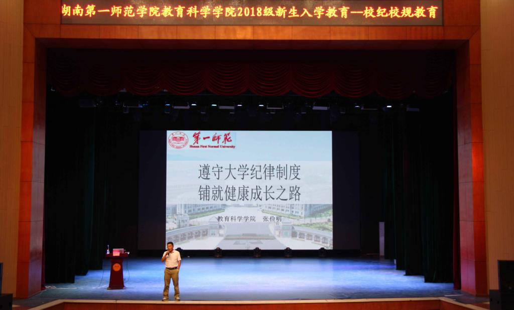 9月9日,教育科学学院2018级新生开学典礼暨入学教育于田汉剧场成功举行。典礼由学院副书记张俭明主持,书记陈天涯、代理院长胡春光、副院长王建平受邀出席典礼。教育科学学院800余名新生到场参加了典礼。