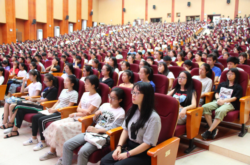 99日上午,我校教育科学学院、数学与计算科学学院2018级新生开学第一课于田汉剧场隆重举行。校长童小娇担任本堂课主讲人,教科院代理院长胡春光主持了此次活动。两院负责人陈天涯、张俭明、王建平、欧阳章东、曾玉华,学工办主任刘军、成夏炎及新生辅导员参与组织了此次活动,1000余名2018级新生到场聆听了别开生面的开学第一课。