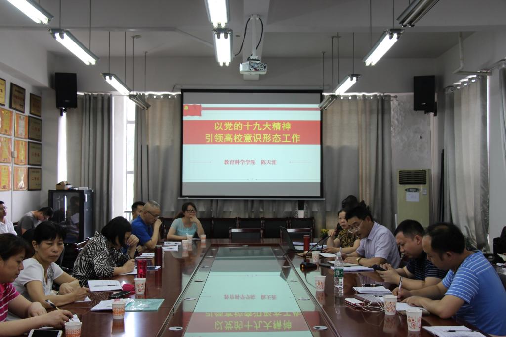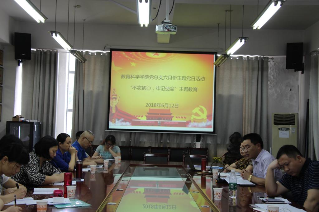 6月12日下午,教育科学学院党总支六月份主题党日活动“不忘初心、牢记使命”主题教育讲座于特立楼A栋会议室成功开展。教育科学学院党总支书记陈天涯、副书记张俭明及全院教师党员、学生党员参加了此次讲座。
