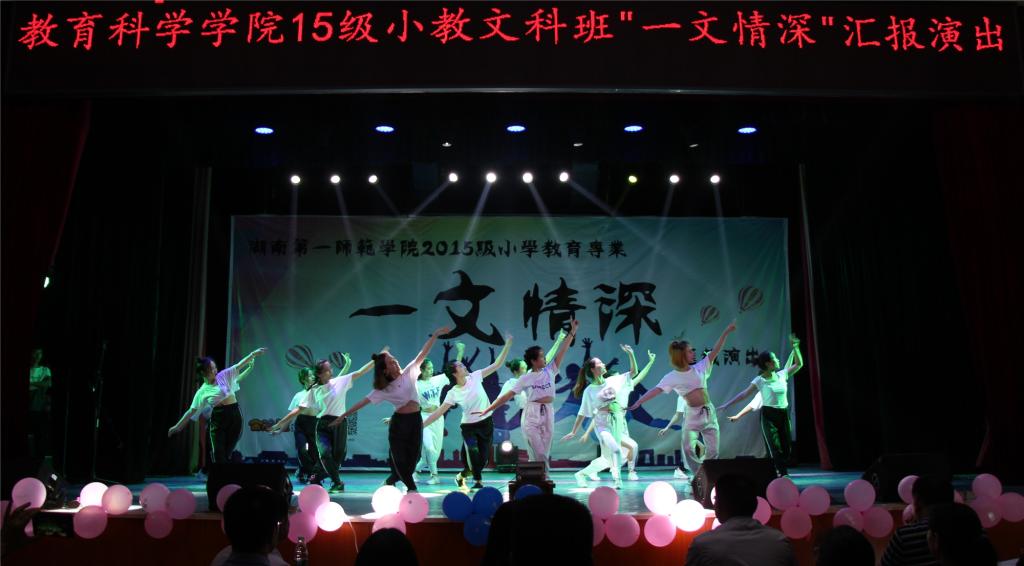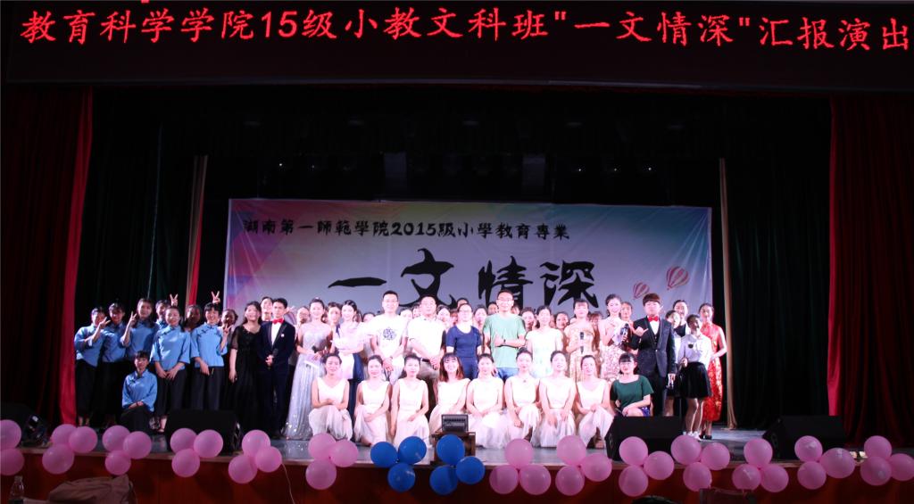 令人期待已久的教育科学学院2015级小学教育文科班“一文情深”专业汇报演出于2018年5月21日晚在特立楼演播厅隆重举行。蒋蓉院长、张俭明副书记、王建平副院长、小学教育教研室全体老师、各位辅导员及300余名学生一起观看了汇演。