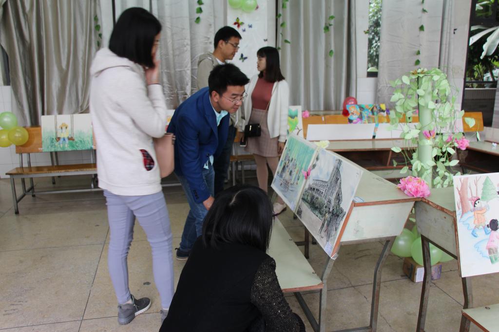 2017年11月7日中午,教育科学学院团总支宣传部在文科楼C栋101-104教室举办以“四季画苑,邀您共赏”为主题的优秀美术作业展。教育科学学院副院长刘丽群、学工办主任陶青、学工办干事刘军及部分辅导员老师应邀到场参观,我院许多爱好艺术的同学也纷纷前往观赏。