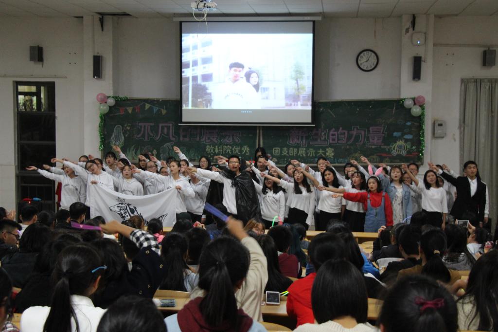 2017年11月7日晚,教育科学学院团总支办公室在实验楼C栋201教室举办了优秀团支部展示大赛。教育科学学院学工办主任陶青,辅导员廖泓宇、邓魁老师应邀出席,近300名学生到场观看。