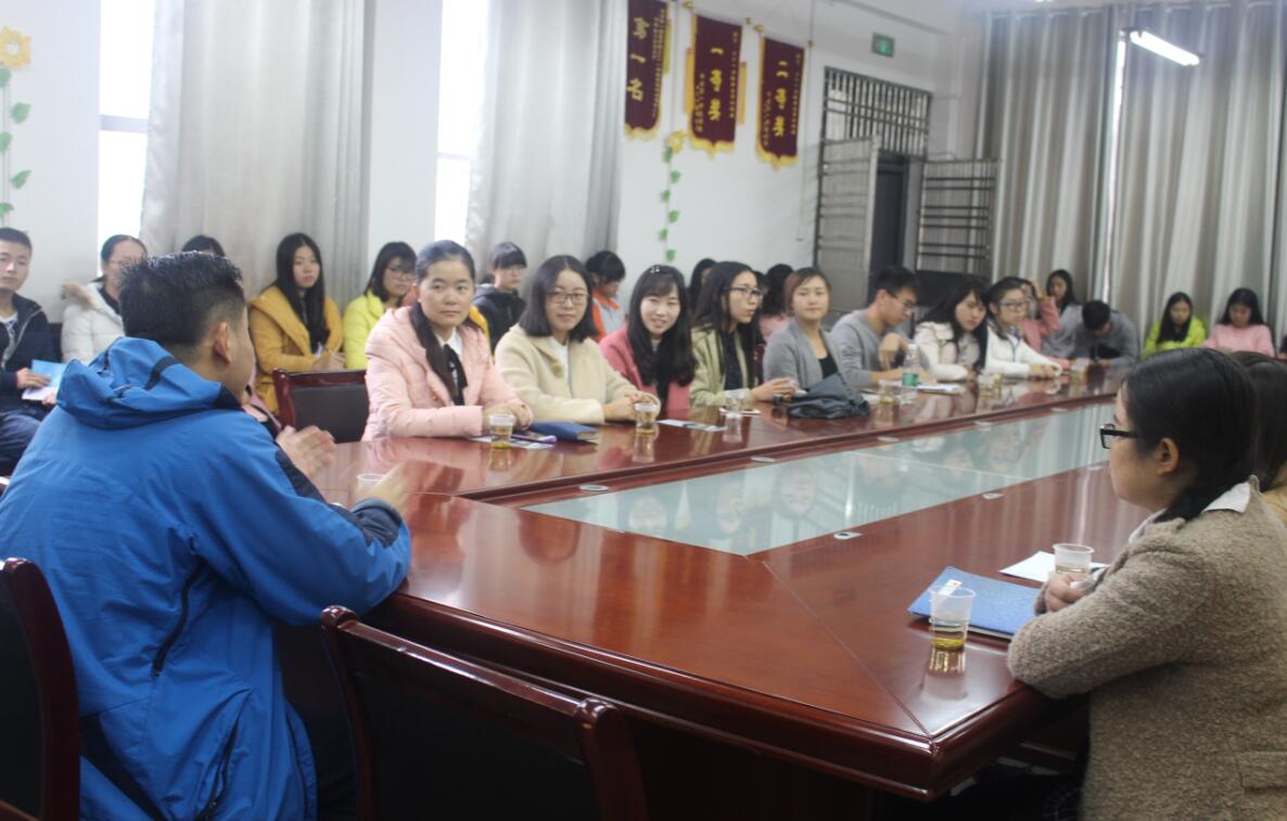2016年11月13日上午,教育科学学院在科技楼a栋208教室举办了主题为“为中国而教”的“未来的教育家”公益项目分享交流会。院学工办主任陶青及石慧老师出席会议,20名优秀毕业生及40余位学生干部到场交流。