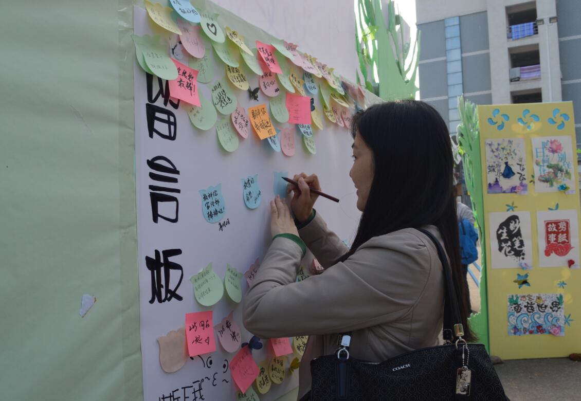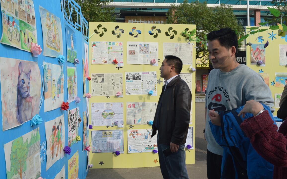此次成果展览活动的策划独具匠心,活动主题为“你若盛开,蝴蝶自来”,展览现场以蝴蝶寓意美好降临,营造浓郁艺术氛围,给观众以直观的视觉冲击。作业展在会场中间摆放一个大型蝴蝶浮剪,四周缠绕藤条,在展板上粘贴优秀作品,加以蝴蝶和鲜花装点,以达到蝴蝶盛宴的效果。经组委会的认真筛选,最终有69幅优秀作品参展。简笔画类型丰富多彩,水墨画韵味十足,水彩画色彩鲜明;变体字不仅字型优美,还搭配了适宜的背景;手抄报版面充实,令人耳目一新。一幅幅精美的艺术品,令观众目不暇接,参观人流络绎不绝,大家在观赏过后纷纷投出了心仪的一票。