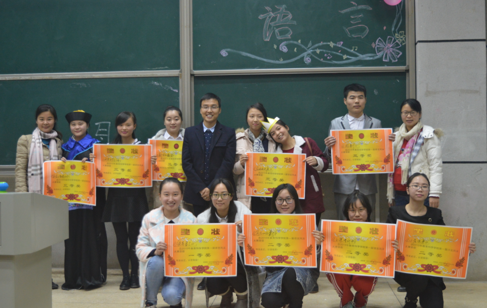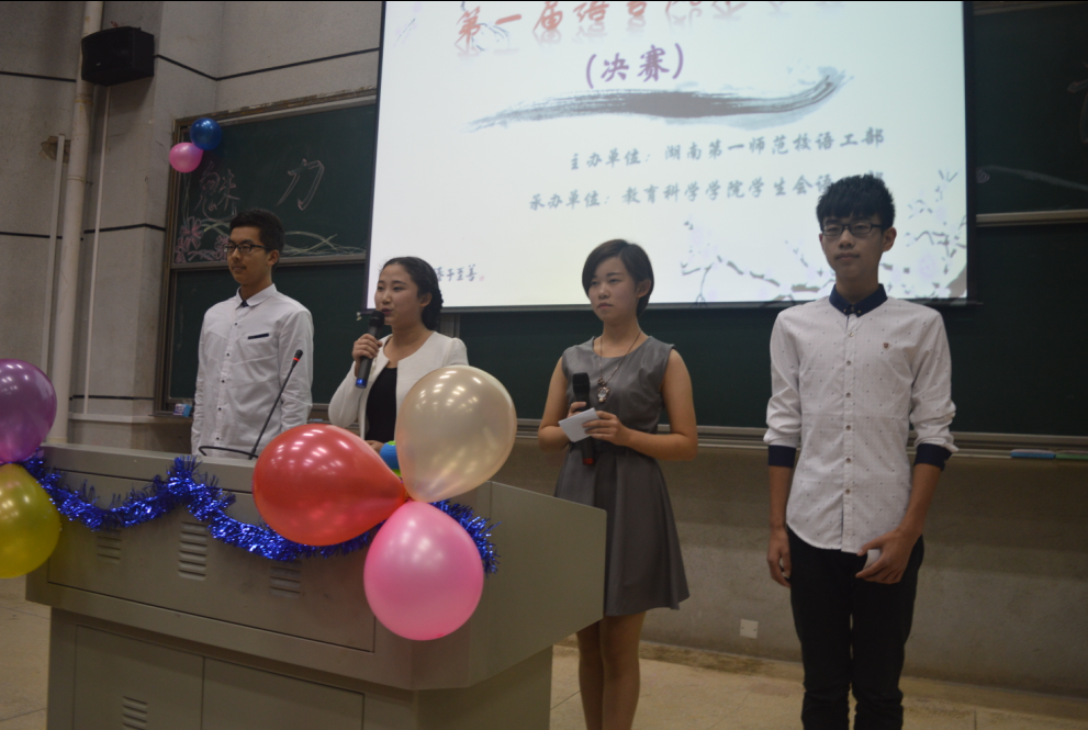 2015年11月20日晚7点,由教育科学学院团学会语工部组织的语言风采大赛决赛在文科楼报告厅隆重举行。由刘军、杨杨、罗娱三位老师及教育科学学院院干代表组成评委团,教科院众多同学观赏了精彩的比赛。