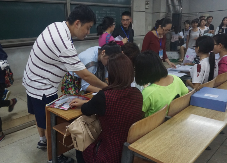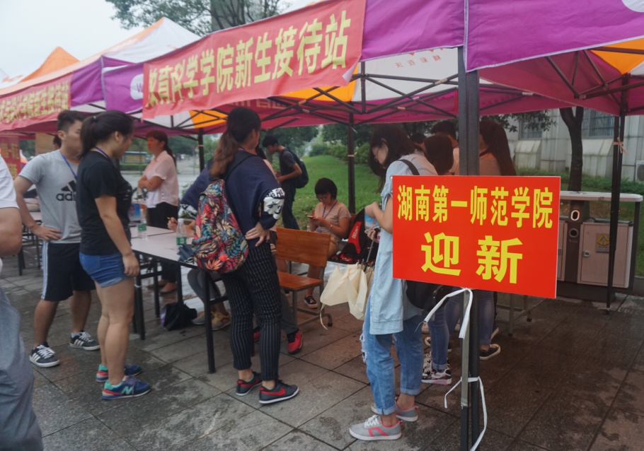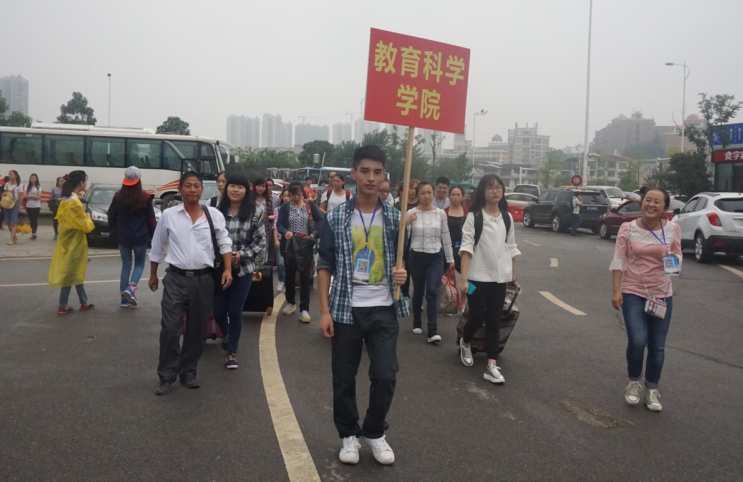 又是一年开学季。2015年9月12日早上6点40分,教育科学学院全体辅导员,迎新学生干部就已经各就各位,各司其职,开始了迎接2015级新生的工作。 此次迎新,我院组织了100名师生作为迎新工作者。在西站\学校门口、文b107、207教室、学生寝室等多个迎新点,他们不厌其烦,不辞辛苦,引导新生完成各项报到程序。学院团学会制作了微信扫描码,新生扫一扫就能找到班号学号;迎新教室醒目的班牌让新生立马就能找到报到班级;训练有素的迎新教师和学生干部,办理报到的各项手续规范、迅速;接送学生报到入住宿舍的学长学姐,如同家人般亲切自然。他们尽职尽责、热情服务。报到现场井然有序、气氛温馨和谐。正如教育科学学院迎新标语所写:“接过你的行囊,我们是教科一家人”,教科院的迎新工作,让新生充分体会到了教科院这个大家庭的关爱和温暖,让家长深切地感受到了教科院教育管理工作规范有序,学生训练有素。