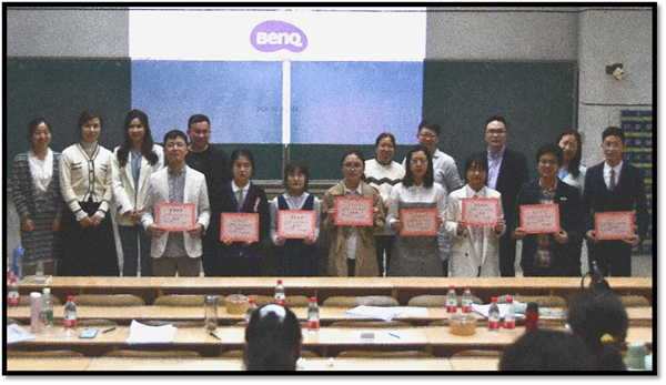 最终,经过评委老师们的层层考核,获一等奖选手名单如下:黎湘玉、张旭斌、曾蓉蓉荣获甲组一等奖;欧阳婉莹、段熠圣荣获乙组一等奖。评委老师为获奖选手们颁发了荣誉证书,并合影留念。至此,本次小教文专业师范生风采大赛圆满落幕。此次比赛为伟德betvlctor1949源于英国小教文全体学生提供了一个学以致用的实践与交流舞台,对提高我院尤其是小教文专业的学生的师范生教学实践水平起到了积极的促进作用。