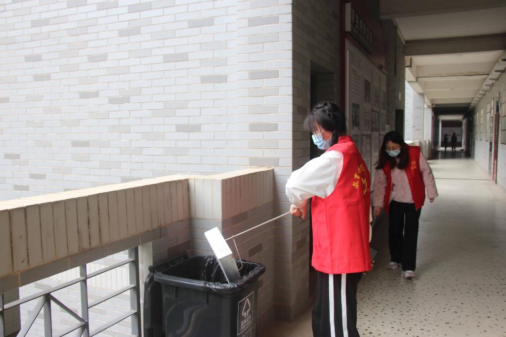 下午三点,参加本次活动的各部门志愿者积极主动地来到中轴广场拱门处集合,随后在各自负责区域展开清洁卫生工作。学生干部与志愿者们手持垃圾袋,身披红马甲,穿梭于特立楼之中,弯腰仔细拾捡地上的各种果皮纸屑,用实际行动践行劳动精神。楼道在同学们的清洁下,更加干净整洁。