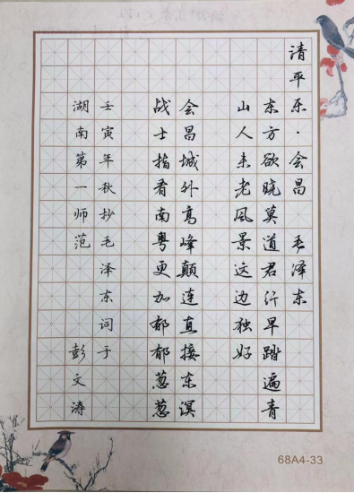 此次比赛由硬笔与软笔两大板块组成。23位来自21级的选手在比赛中全神贯注,用心书写着每一笔每一画,中华汉字在同学们的笔下绽放出绚丽的光彩,它们或娟秀婉约,或苍劲有力,或端正整齐,充分彰显了我系学子深厚精湛的书法技艺。