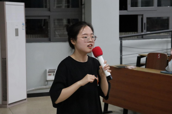 然后,19学前1班的朱婷为学弟学妹们分享了个人考编经验。首先她介绍了自己的考编动机,并指出要结合自己个人的基本情况,准确定位自我的优势和劣势,找到合适的目标。她希望大家能结合实际情况,大胆尝试,慎重选择。