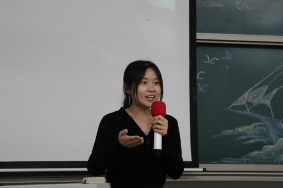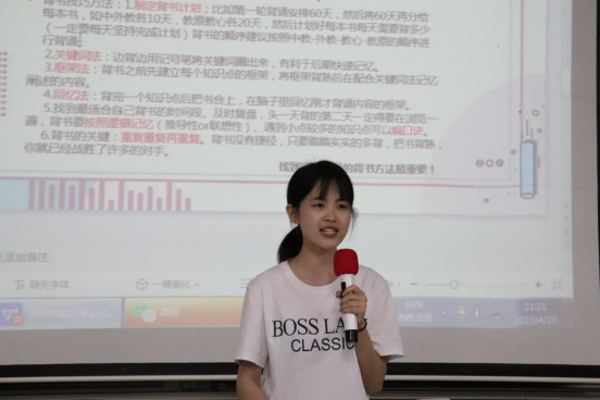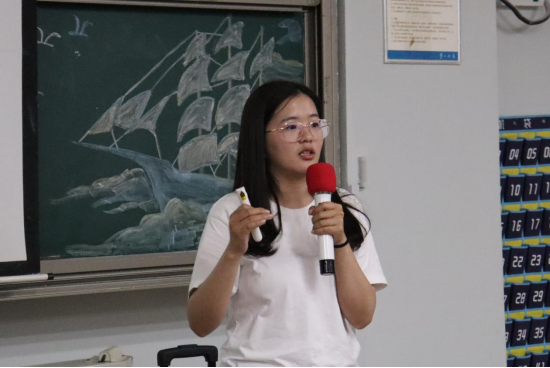 随后,成功上岸23届华南师范大学学前教育专硕的陈欣同学上台发言。她首先简单介绍了今年的考研情况,并以华南师范大学为例,详细介绍了在考虑学校特色、城市因素、未来发展规划、专业课难度等各类因素的基础上,如何进行院校选择。她还讲述了自己各科的备考经历,分析了科学的备考方法。最后她指出,考研是一场持久战,同学们要学会享受备战考研的成长过程。