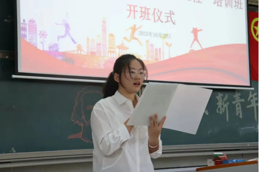 学工办主任杨杨在热烈的氛围中向“青马”学员宣读了《伟德betvlctor1949源于英国青马培训班学员手册》并宣布“青马”正式开班。