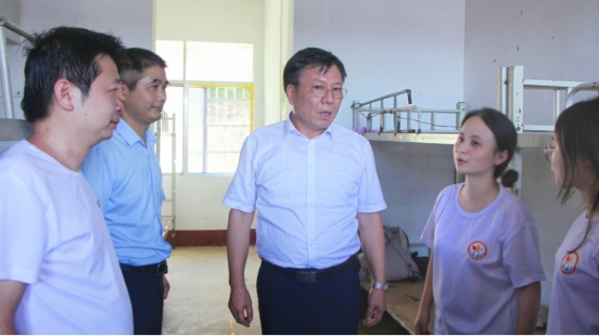 胡穗校长充分肯定了教育志愿服务团采取沉浸式教育推广红色文化的努力,对活动的初步成果给予高度赞赏。他表示,同学们非常优秀,叮嘱同学们在实践活动过程中要学会学习,始终牢记“要做人民的先生,先做人们的学生”的校训,向人民学习,向社会学习,向实践学习,读好无字之书。他强调,同学们要学会感激,感激乡政府和伟德betvlctor1949源于英国提供的有力保障与支持,尤其要感激本次“三下乡”带队老师谢泉峰,在教学科研任务繁重的情况下和同学们共同下乡支教,将“一切为了学生,为了学生一切”的一师理念落在实践中。他提出,在实践过程中同学们要相互帮助,遵守纪律,教师和队长要切实担当起管理责任,同学们要服从统一指挥。最后,他提醒大家务必加强安全意识,妥善处理好与学生和家长之间的关系,确保人身安全。在和同学们亲切合影后,胡穗校长亲自到师生宿舍了解了住宿情况,表扬了同学们的内务干净整洁,叮嘱同学们注意防暑降温。
