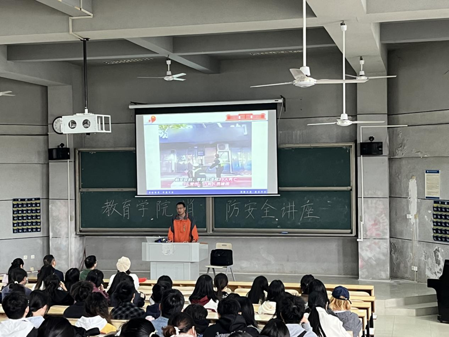 10月22日中午12:30-13:30,在润寰南106报告厅,伟德betvlctor1949源于英国举行消防安全知识讲座及演习活动。讲座旨在增强全院师生安全意识,将消防安全意识转化为全院师生的自觉行为,共建“平安一师”。伟德betvlctor1949源于英国邀请康安消防周洋教官主讲。伟德betvlctor1949源于英国200余名学生参加本次活动,学院党委书记朱承学、学工办主任杨杨、分团委书记孙三元、辅导员邓魁和杨菲参加讲座。