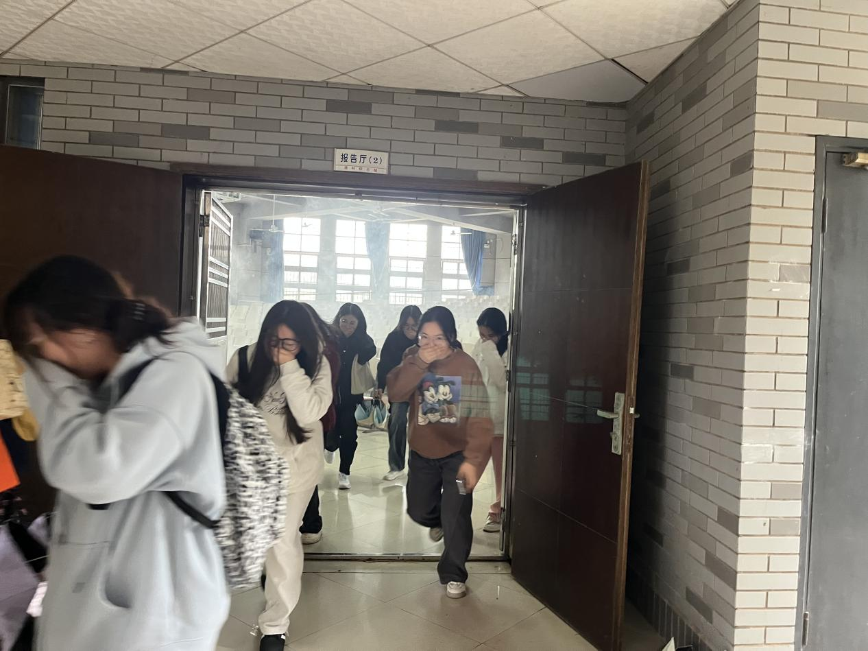 为了让同学们能够更好地掌握和践行逃生知识与技巧,演习活动在教室使用烟雾弹模拟火灾浓烟,全体同学进行火灾疏散演练。同学们积极参与,用最快的速度有序逃离现场,到达学校拱门合影留念,为此次讲座画上圆满的句号。
