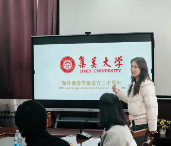宣讲会上,刘思含主任系统梳理了海外研究生申请的通用流程及注意事项,涵盖院校选择、语言考试准备、材料提交等关键环节,为学子们提供了清晰的行动指南。刘鑫钰专员则详细介绍了集美大学中外合作项目与海外高校联合培养的优势,包括海外研究生预科中的学分认证机制、双学位授予政策及海外硕士研究生的特色专业等。王兴惠老师则重点介绍了新加坡PSB学院在商科、工程等领域的国际声誉,为同学们申请新加坡各类大学硕士研究生提供了较为全面的信息。