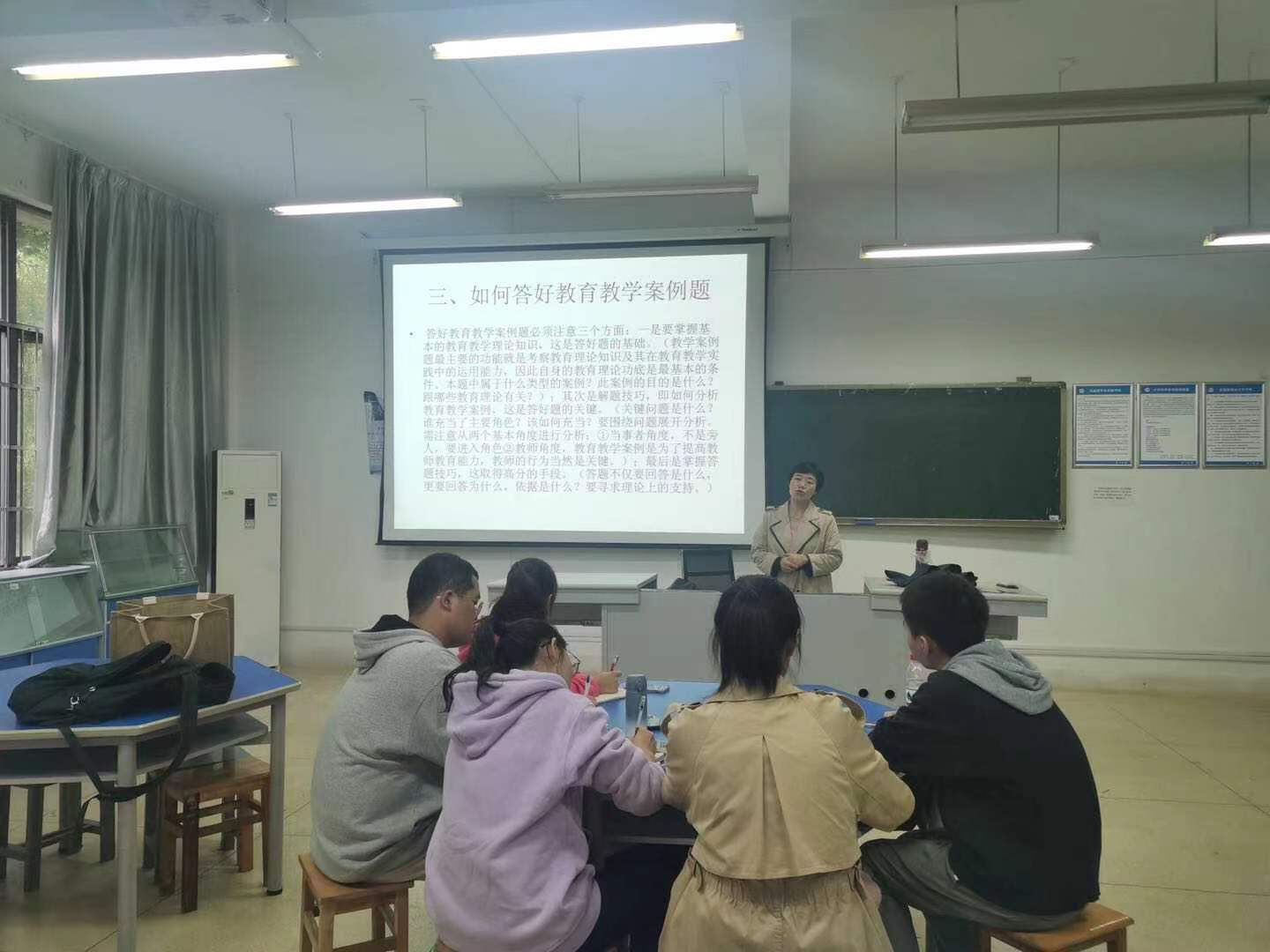 2021年10月15日下午,李晖旭、曾晓洁两位教师受教育科学学学院之邀,在玉衡南104教室给尹为、谭玺、赵文嘉、谭可雨、杨阿龙、朱婷六位入围选手,进行湖南省普通高等学校师范生教学技能竞赛的赛前辅导。