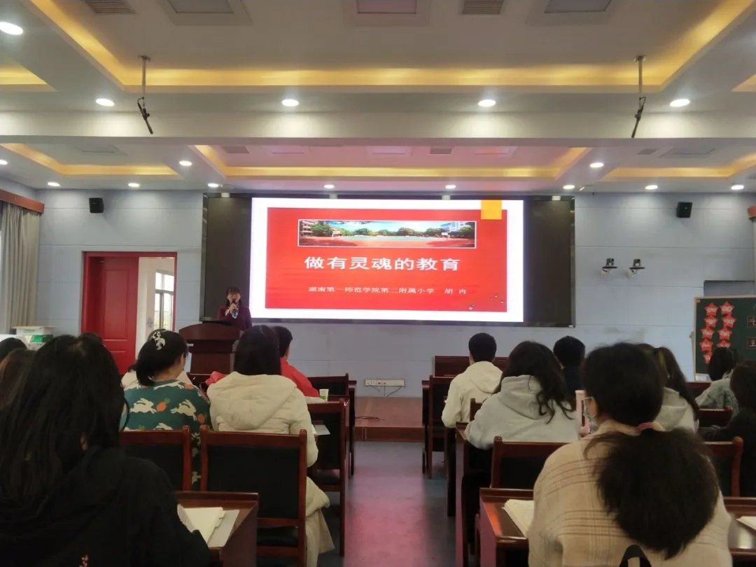 随后,一师二附小胡冉老师开展微讲座《做有灵魂的语文教育》。胡老师从童心、激情、热爱、智慧四个关键词入手,分享了她在教学方面的成长经历以及富有创造性的教学手段,以此来引导、鼓励大家做有灵魂的语文教育。胡老师能立足儿童的心理特点,创设学生喜爱的教学情景;同时与家长默契配合,创新学习方法,促使教学手段多样化,降低了学习难度,提高了学习效率,使学生的学习兴趣和学习能力得到了进一步提升,给我们树立了一个极好的典范。