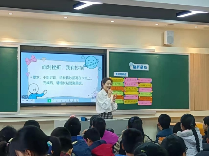 廖丽君同学在六(3)班执教《挫折星球》,以“与挫折对话”贯穿整堂课,引导学生了解挫折、面对挫折,从而和学生共同探讨挫折的解决方式。廖丽君对课堂各个环节的把控准确,形式活泼,学生发言热烈。曹琳敏同学在四(2)班执教《我爱我家》,以学生沉浸式的体验开展课堂,课堂内容的呈现丰富多彩,贴近学生身心发展特点。整堂课逻辑清晰,环节紧凑,教态亲切自然,有亲和力,最后环节带着同学们回忆班级的幸福时刻,从与家人小家上升到校园的大家,内容得到了升华,整堂课的气氛达到了最高潮。汇报课后,黄月胜副院长和心理学教研室老师们对两堂课进行了深刻点评。