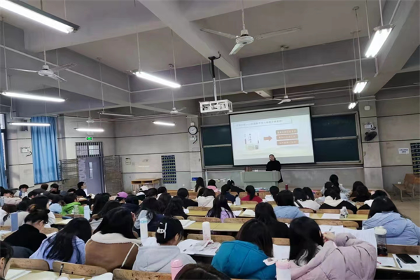 2021年11月26日上午,物理与化学学院科学教育专业6个实习队在怀中南106室开展了“初心如磐,拔节成长——科学教师的课堂探索与成长”主题教育讲座,新成立的物理与化学学院2019级814、815、816科教班148名实习生聆听讲座。