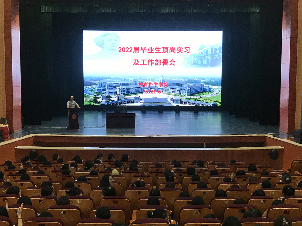 6月24日19:00时,教育科学学院组织召开2022届毕业生顶岗实习及工作部署会,张志新书记、黄月胜院长助理、龚婧老师及2018级辅导员和全体学生参加。