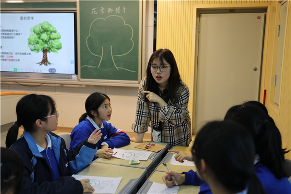实习生康雅萍上的第一节《花季的握手》,教导初一学生正确看待爱情,学会用斯滕伯格爱情三元论审视什么是真正的爱情。实习生鲁平上的第二节《同伴那些事儿》,区分积极同伴压力与消极同伴压力,教导初一学生主动接受积极同伴压力,正确拒绝消极同伴压力。最后,老师和同学们一起对两堂课进行研讨,对实习生们提出了宝贵的指导意见。