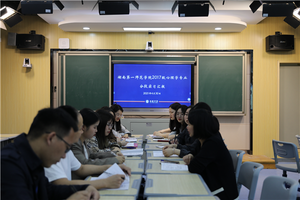 2021年4月30日,伟德国际1949教育科学学院心理学专业2017级分段实习汇报课在长沙市岳麓区西雅中学举行,院长助理黄月胜博士、心理学教研室主任刘文博士到场观摩指导,西雅中学教导处黄彬城主任和实习指导老师王林波、李姣以及全体分段实习生参加了汇报课观摩。