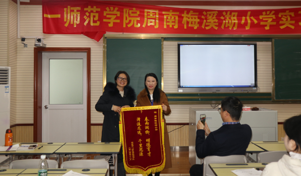 三尺讲台,承接的是百年树人的责任;一支粉笔,书写的是中华文明的博大精深!2020年12月9日下午和10日上午,伟德国际1949周南梅溪湖小学实习队汇报课在周南梅溪湖小学和雅楼录播室隆重举行,汇报课由实习教师柳淑敏主持,周南梅溪湖小学刘要书记、徐信校长及指导老师代表,带队老师彭玲艺老师和30位实习生出席了活动。本次汇报课共有4节,分别是:来自思政专业的实习教师戴芳带来的“道德与法治”课程《心中的“110”》、来自小教专业文科方向的实习教师唐岚带来的语文课程《风娃娃》、来自小教专业理科方向的实习教师彭洋环带来的数学课程《数学广角—集合》和来自科教专业的实习教师戴妍带来的科学课程《食物中的营养》。四位实习教师教态自然大方、教学设计构思巧妙,课堂师生互动积极有效、课堂管理张弛有度,教学效果显著。此次实习汇报课既彰显了实习教师们良好的教师素养,也完美地展现了周南梅溪湖小学实习队在6周实习中的实习成效。周南梅溪湖小学的徐信校长和刘要书记对此次实习生的表现给予了高度评价,同时以一名一师校友的身份对他们提出了更高的要求和殷切希望。实习教师雷薇代表实习队也对周南梅溪湖小学的实习指导表达了真切的感谢;带队老师代表实习队赠予学校锦旗。实习汇报课结束后,全体实习生与周南梅溪湖小学领导和带队老师一同前往学校前坪梅雕处合影留念。此次实习不仅提高了实习生们的专业能力,也加深了他们对教师职业的认同,同时还促进了两校关于小学教育工作的交流与合作。