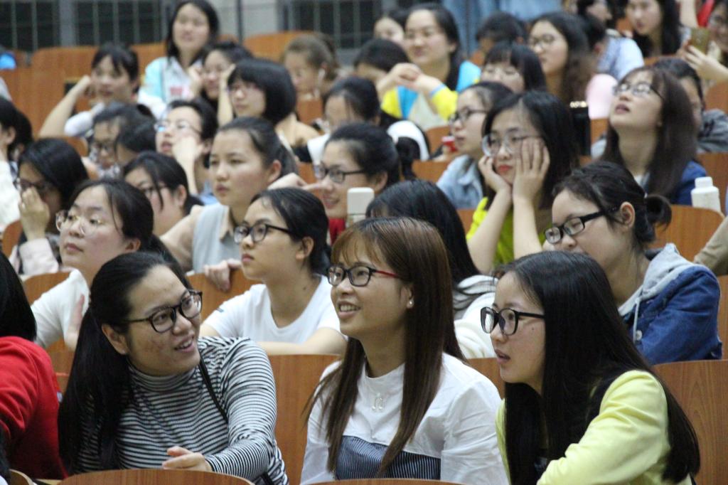 4月12日晚,我院顶岗实习交流分享会在怀中楼报告厅顺利举行。本次分享会邀请了我院8位优秀的大四实习生,分别是14科教1班游领、14小教理1班邹益珍、14小教理2班阳芷晴、14小教理3班邓楠、14小教理4班唐小芳、14小教文1班陈竞、14级666科教班黎佳宁和14级665科教班龙欢。分享会由李若达和姚宇宗同学共同主持,约300名学生到场聆听。
