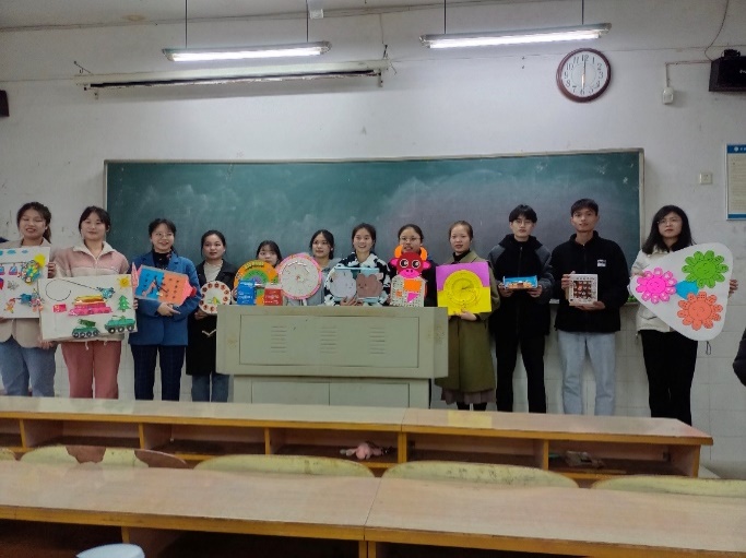 教具作为教师辅助教学的用具,有着其他手段不可替代的作用。实物教具具有直观形象的特点,在教学活动中,教师通过实物教具演示对帮助学生操作实践、加深对概念的理解、促进学生有效学习具有重要的作用。在数学教学中,尤其是对于以形象思维为主的小学生来说,用具体模型和直观教具进行说明与演示操作仍然是至关重要的。因此,为提高未来教师的创新意识和专业素养,倡导同学们利用新材料、新技术自制教学用具,2021年12月15日下午4点,我院于玉衡北508隆重举行师范生教学技能大赛暨2019级实习生自制教具比赛。组织开展实习数学教师自制教具比赛。我校教师谢立红,谢泉峰,张洪萍,柳燕,雷菁和尹桂荣莅临本次活动并担任评委。