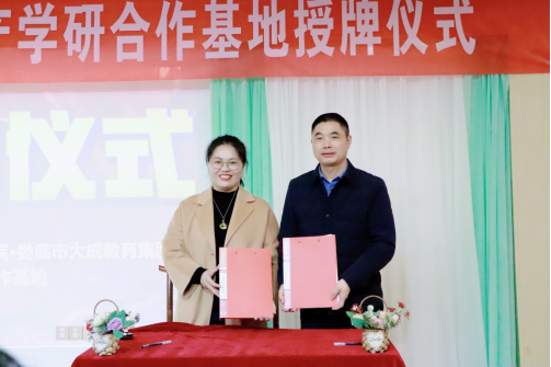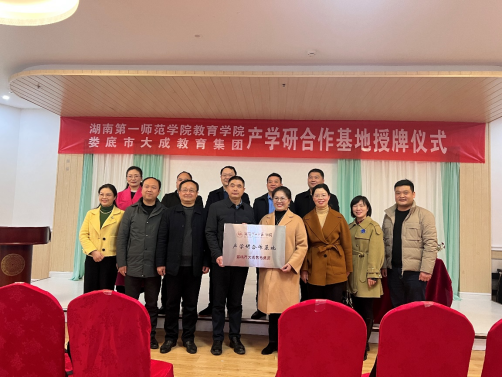 最后,朱承学书记代表学院与娄底市大成教育集团签订了“产学研合作基地”共建协议,并举行了授牌仪式。