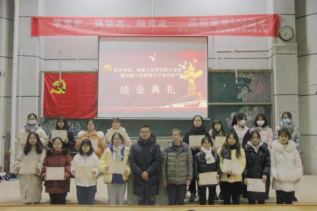 为了筑牢入党积极分子的理想信念之基,增强入党积极分子的党建意识,12月27日晚七点,伟德betvlctor1949源于英国和物理与化学学院在怀中南110教室举办2021年第28期入党积极分子培训班结业典礼。此次典礼由伟德betvlctor1949源于英国学工办主任刘军主持。