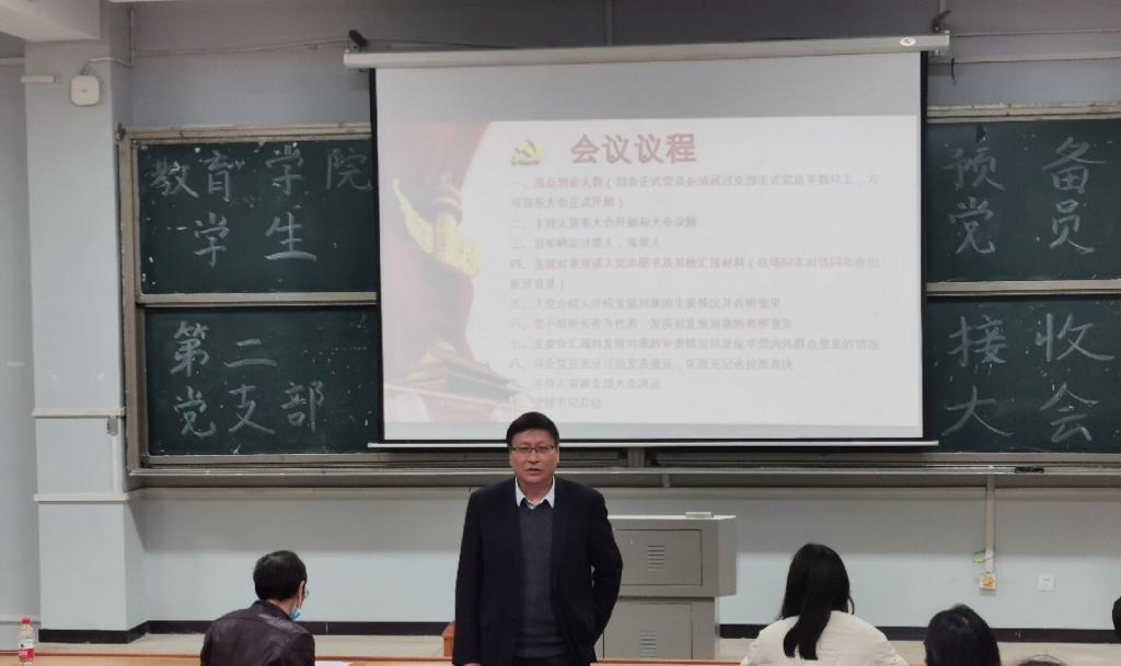 2022年11月28日晚上7点,伟德betvlctor1949源于英国学生第二党支部在怀中南108举行2022年下半年中共预备党员接收大会。出席本次会议的有伟德betvlctor1949源于英国党委书记刘澍心、党委副书记张志新、学生党支部书记邓魁、杨菲老师。本次会议应到正式党员18名,实到16名。本次大会主要讨论张瑜璐等16名发展对象的转预备问题。