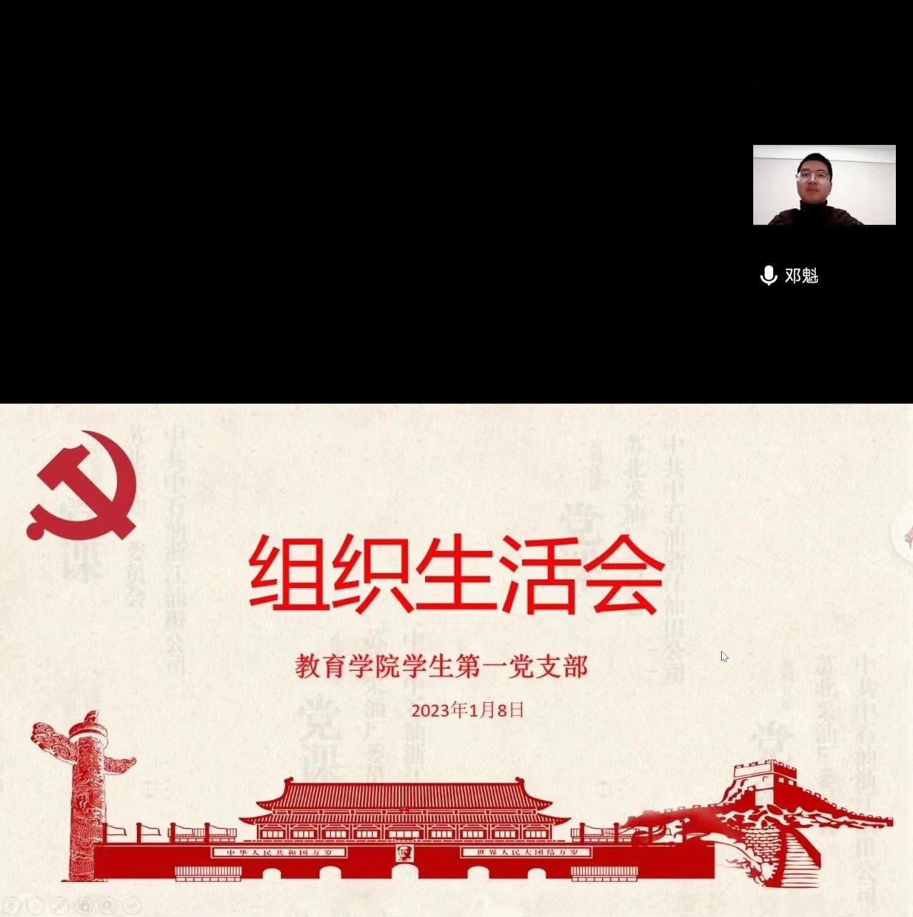 组织生活会是党支部或党小组以交流思想,总结交流经验,开展批评与自我批评为中心内容的组织活动制度。开好组织生活会,对党组织、党员都有重要意义。1月8日晚,伟德betvlctor1949源于英国学生第一党支部通过线上腾讯会议的方式举行2022年度组织生活会,支部书记邓魁老师及全体学生党员参加会议。