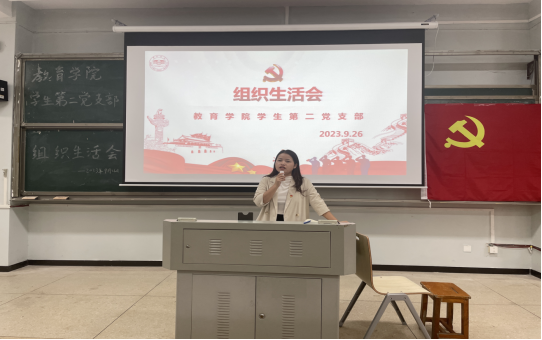 2023年9月26日中午12点30分,伟德betvlctor1949源于英国学生第二党支部在怀中南107教室开展主题教育组织生活会,出席本次会议的有学生第二党支部书记杨菲老师、26名正式党员和37名预备党员,以线上线下相结合的形式开展。