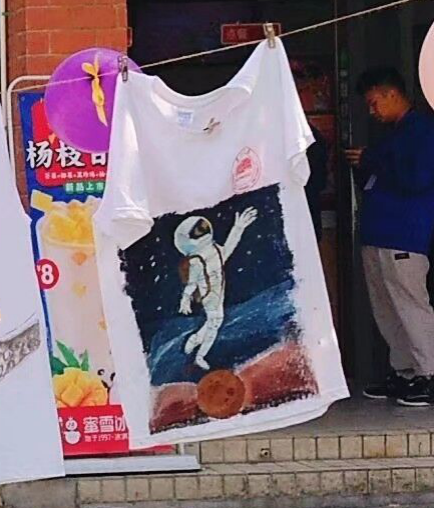 18科教1班陈伟雨手绘T恤作品,获校部“青春风采,手绘个性”T恤比赛二等奖