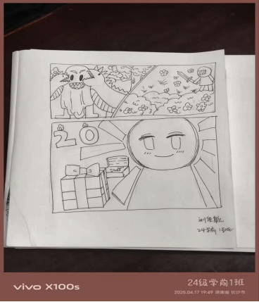 4月14日至17日,心育部分阶段面向大一11个班级学生开展了“二十岁生存游戏:今天你通关了吗?”——互动式朋辈心理课。以游戏副本为创意蓝本,将学业、生活焦虑转化为趣味挑战。在课程尾声,以“二十岁成就认证”拍照任务定格成长足迹,各班优秀作品在官Q展示投票,联动其他年级学生围绕“与自己和解”主题创作漫画,优秀作品随后在特立楼展出,吸引众多师生驻足观看。