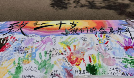 4月25日,心育部在国基广场举办手绘画接力活动。活动现场,学生们或用颜料涂抹手掌留下独特个人印记,或围绕“二十岁”主题自由创作绘画作品,尽情发挥想象力,描绘对未来的期许与当下的感悟。这些手绘画作品最终与主题漫画作品一同展出,为校园增添一抹亮丽的青春色彩。
