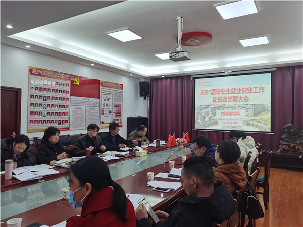1月20日下午,学院在特立楼北208会议室举行2021届毕业生就业创业工作动员及部署大会,参加会议的有院党总支委员、科室负责人、教研室主任、党支部书记和非定向毕业班辅导员。院党总支书记陈天涯主持会议。