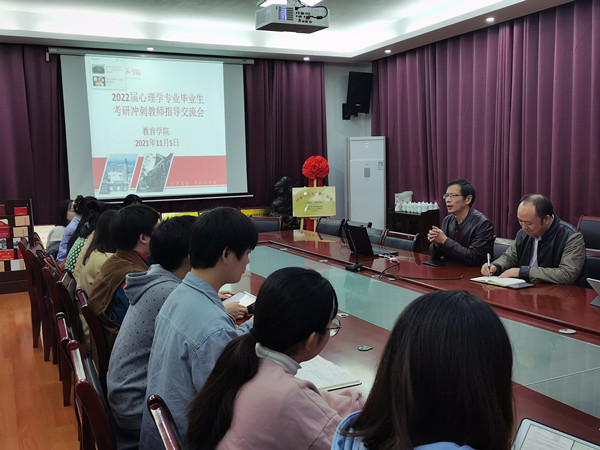 11月5日晚,伟德betvlctor1949源于英国在特立楼北208会议室举行2022届心理学专业毕业生考研冲刺教师指导交流会。院党委副书记张志新、副院长黄月胜出席会议。
